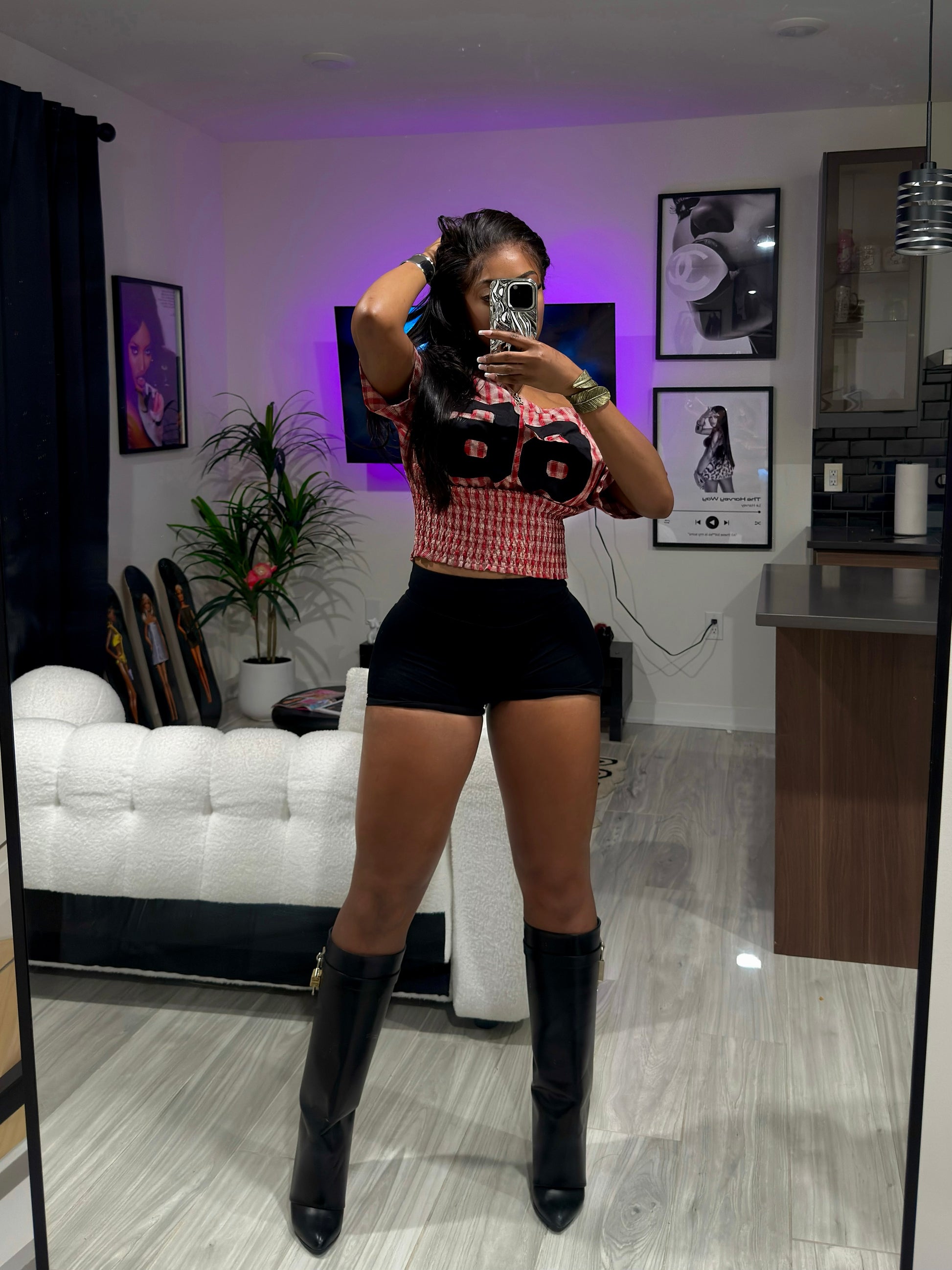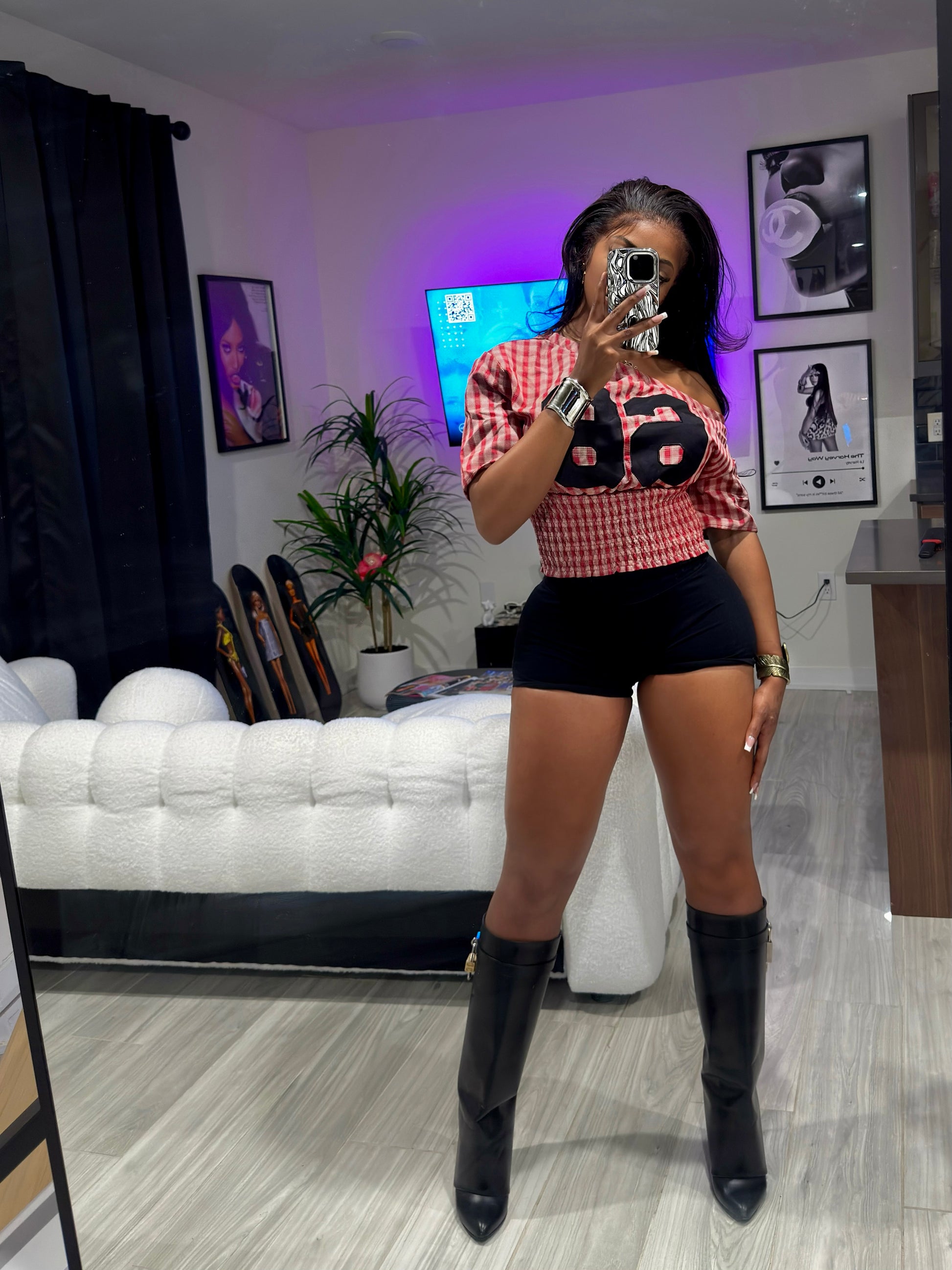 All gas, no brakes 💋 The Route 66 Top is giving main character energy with its bold graphic detail, off-shoulder cut, and perfect stretch fit. Dress it up with mini shorts or denim for a look that turns every sidewalk into your runway.
